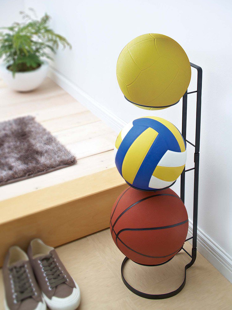 ボールスタンド フレーム ブラック【玄関収納 サッカーボール バスケットボール バレーボール 置き 子供 おもちゃ 収納 ラック 北欧 テイスト 子供部屋 子ども部屋 インテリア雑貨 おしゃれ かわいい 山崎実業】